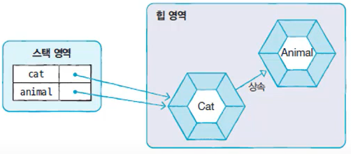 //cat과 animal은 동일한 객체를 참조하고 있다.