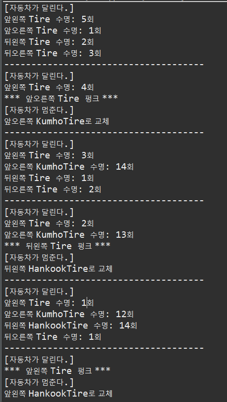 System.out.println("앞오른쪽 KumhoTire로 교체");
