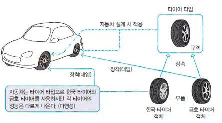 frontRightTire, backLeftTire는 원래 Tire객체가 저장되어야 하지만, Tire의 자식 객체가 저장되어도 된다. 자식 타입은 부모 타입으로 자동 타입 변환 되기 때문이다.