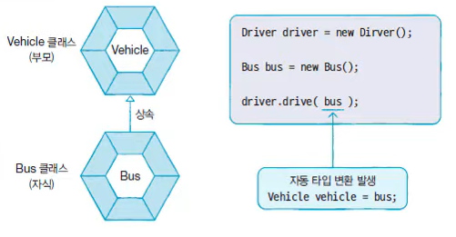 driver.drive(bus); // 자동 타입 변환: Vehicle vehicle = bus;