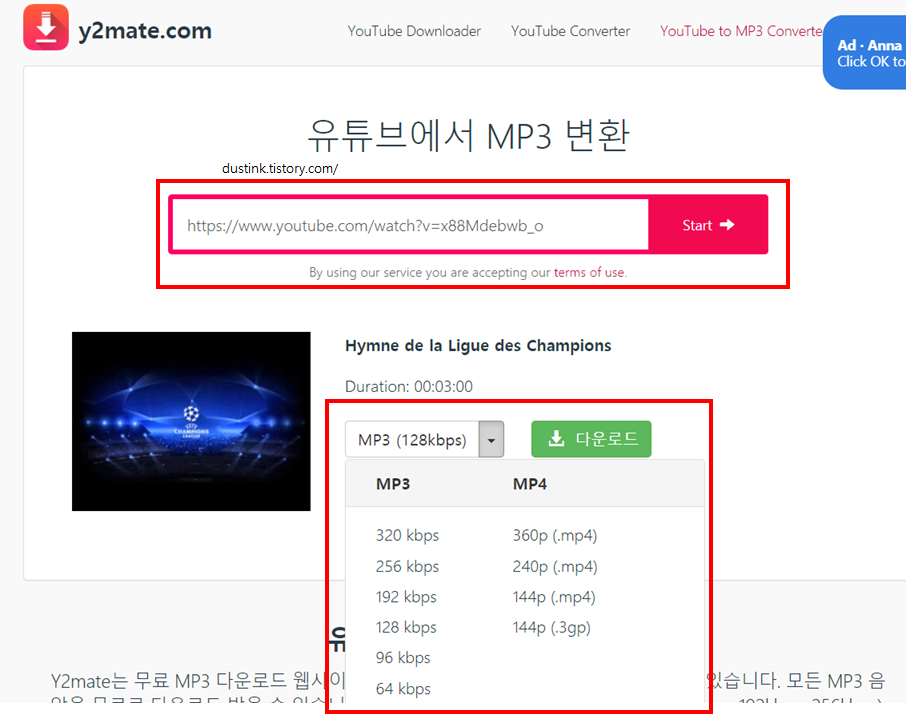 사실 이 사이트는 광고가 너무 많아서 잘 사용은 안하는데, 유투브 영상 및 노래는 무조건 다 다운은 된다.. 그래서 쓴다.