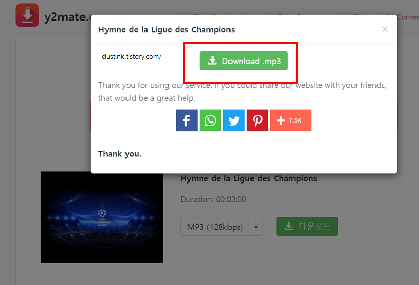 파일 형식명이 여긴 y2mate.com- 파일명.mp3/mp4 이다. 그러니 나중에 파일명은 변경해서 저장하면 된다.