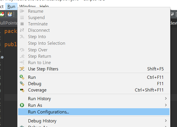 객체 참조가 없는 상태의 참조 변수로 객체 접근 연산자인 도트(.)를 사용했을 때 발생 한다.