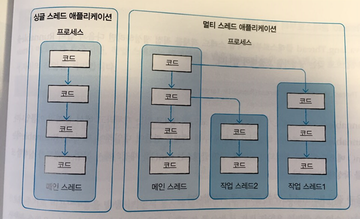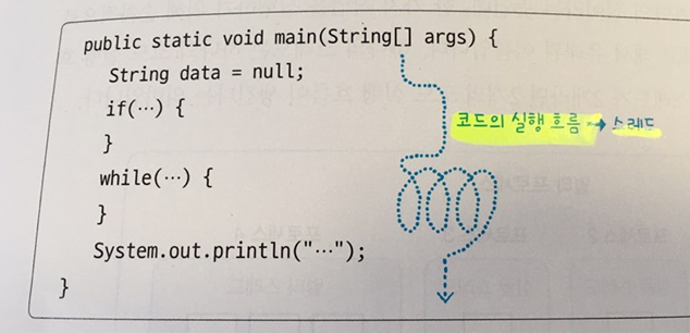 스레드는 한가닥의 실이라는 뜻인데, 한가지 작업을 실행하기 위해 순차적으로 실행할 코드를 실처럼 이어놓았다하여 유래 되었다.