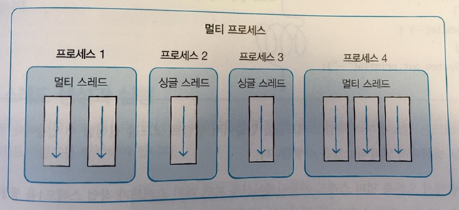 프로세스(process): 애플리 케이션을 실행하면 운영체제로부터 실행에 필요한 메모리를 할당받아 애플리케이션이 실행