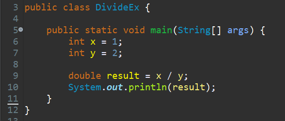 0.5가 나오게 하려면 둘 중 하나 혹은 둘다 double로 타입 변환을 해야한다.