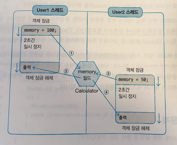멀티 스레드 프로그램에서 스레드들이 객체를 공유해서 작업해야 하는 경우, 스레드 A가 사용하던 객체를 스레드 B가 상태를 변경할 수 있기 때문에 스레드 A가 의도한 것과는 다른 결과가 나올 수 있다.