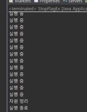 System.out.println("자원 정리"); //stop이 true가 될때 멈춤