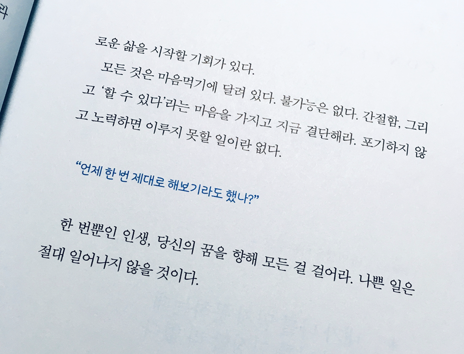 항상 새해 1월은 좋은 글귀, 좋은 문구, 한해도 열심히 살 수 있도록 동기 부여가 되는 책들을 읽는 편이다. 그러면 왠지 올해도 좋은 일이 가득하고, 매사에 열심히 살 것 같은 느낌이 들기 때문이다.